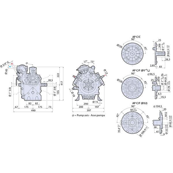 This semi-hydraulic diaphragm pump is for high-pressure pesticide application in orchards and vineyards, featuring anodized aluminum and stainless steel parts, NBR diaphragms and seals, and a clear oil level tank. It offers smoother operation with an air-hydraulic damper, optional remote monitoring, enhanced diaphragm protection, efficient valves, safety features, and galvanized fasteners.