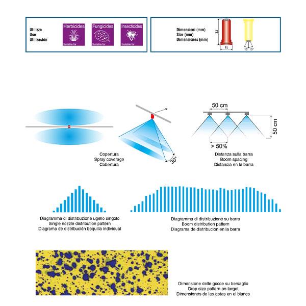 Their three-piece structure allows for easier cleaning operations. They ensure a good coverage and enhance product penetration and settling. Twin Fan Air nozzles have the same rate as Twin Fan Standard nozzles but spray larger drops and therefore ensure reduced drift. Twin nozzles - two spraying points in one body. Suitable for boom spraying, especially onto potatoes, onions and grains. Filtration should be half the value of a standard nozzle. Made of molded Delrin®, a polymer ensuring high chemical stability and an exceptionally long useful life. Suitable for herbicides, fungicides and pesticides. Click on "Add Optional Product" for more color options.