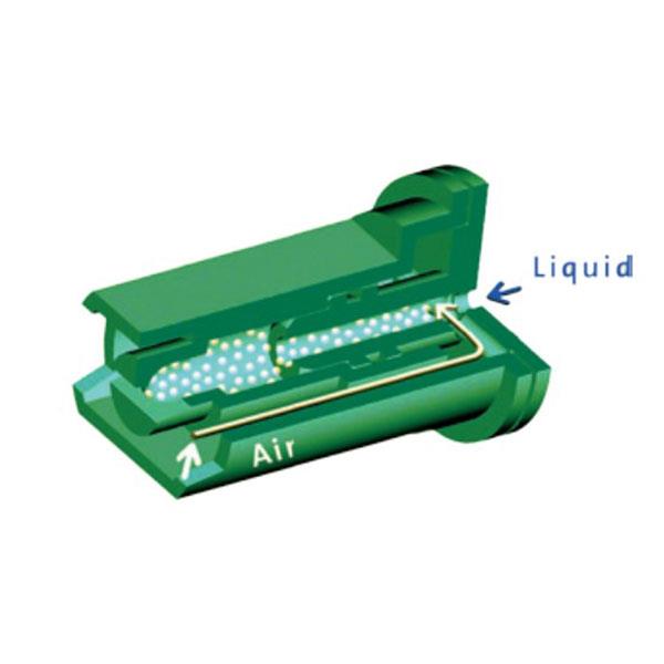 Two-piece design, no tools required for opening, no seals. Air cleaning system, no blocking of air entrance. Droplet size adjustable from coarse to fine through pressure. Up to 90 % drift reduction. Wide application range from 40-1000 l/ha Fits in double flat fan cap. Fits in caps with spanner width of 8 mm, commonly used on most sprayers.