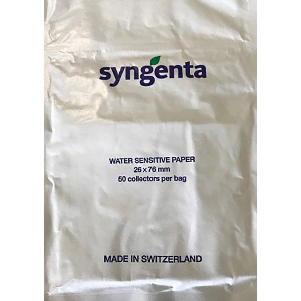 Use: Water sensitive paper to check chemicals distribution. Yellow water sensitive paper turns blue where it gets wet. By placing a sufficient number of collectors over the plant, you can easily check the quality of the application by checking the evenness and regularity of the distributed solution. Optimum sprayer regulation increases the quality of the treatment, permitting correct distribution of plant protection products. Results: - Better chemicals application; - Environmental protection; - Less tank residue. Each bag holds 50 collectors (dimensions: 2.6 cm x 7.6 cm)