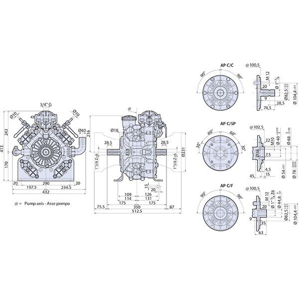 This semi-hydraulic diaphragm pump is for high-pressure pesticide application in orchards and vineyards, featuring anodized aluminum and stainless steel parts, NBR diaphragms and seals, and a clear oil level tank. It offers smoother operation with an air-hydraulic damper, optional remote monitoring, enhanced diaphragm protection, efficient valves, safety features, and galvanized fasteners.